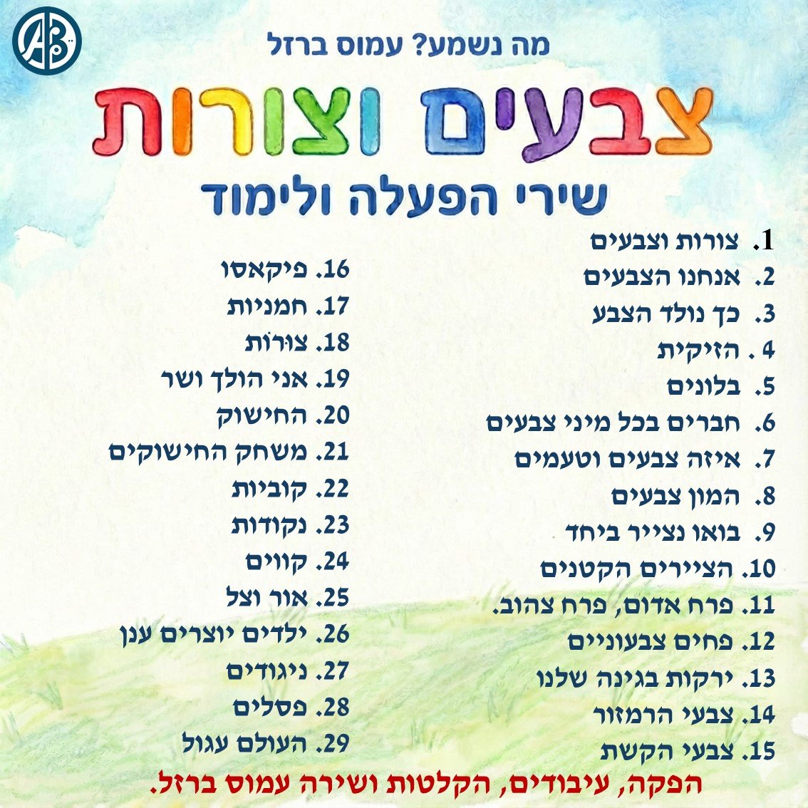 אלבום שירים מיוחד המלמד את הילדים את הצבעים בעולם מעולמו של הילד כמו צבעי הקשת,